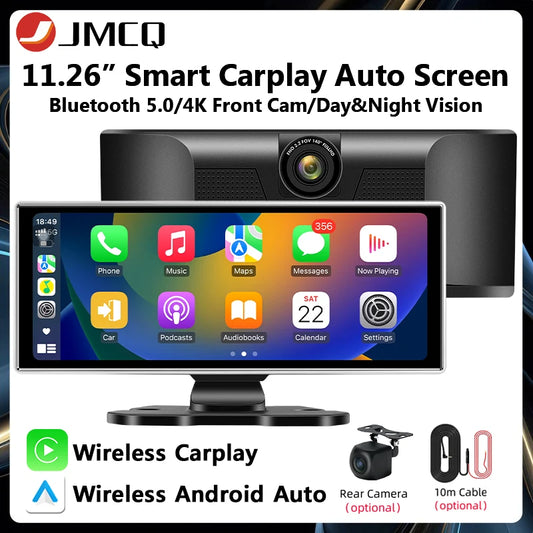 Universal 11.26" 4K Front Cam Car DVR Wireless Carplay Android Auto Video Recorder QLED Screen WIFI AUX FM Dual Lens GPS